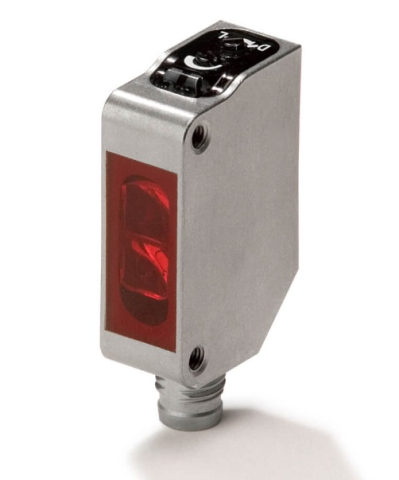 Optický senzor, hranaté pouzdro, nerezová ocel, červená LED, retroreflexní, 4 m, PNP, světlo zapnuto/tmavé-zapnuto, M8 4kolíkový konektor
