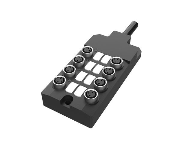 DB080803-1-05P Lanbao je distribuční box určený pro připojení více senzorů v automatizačních aplikacích. Umožňuje přehledné rozvedení signálů z 8 portů M8 a zjednodušuje montáž kabeláže.