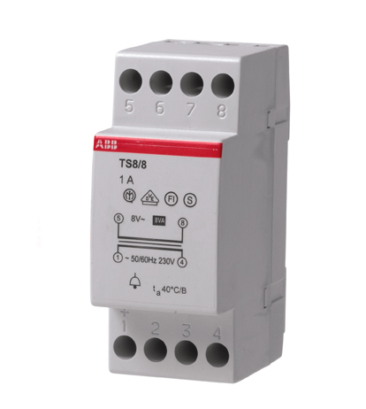 Transformátor zvonkový bezpečnostní TS 8 / 8. 2 moduly.