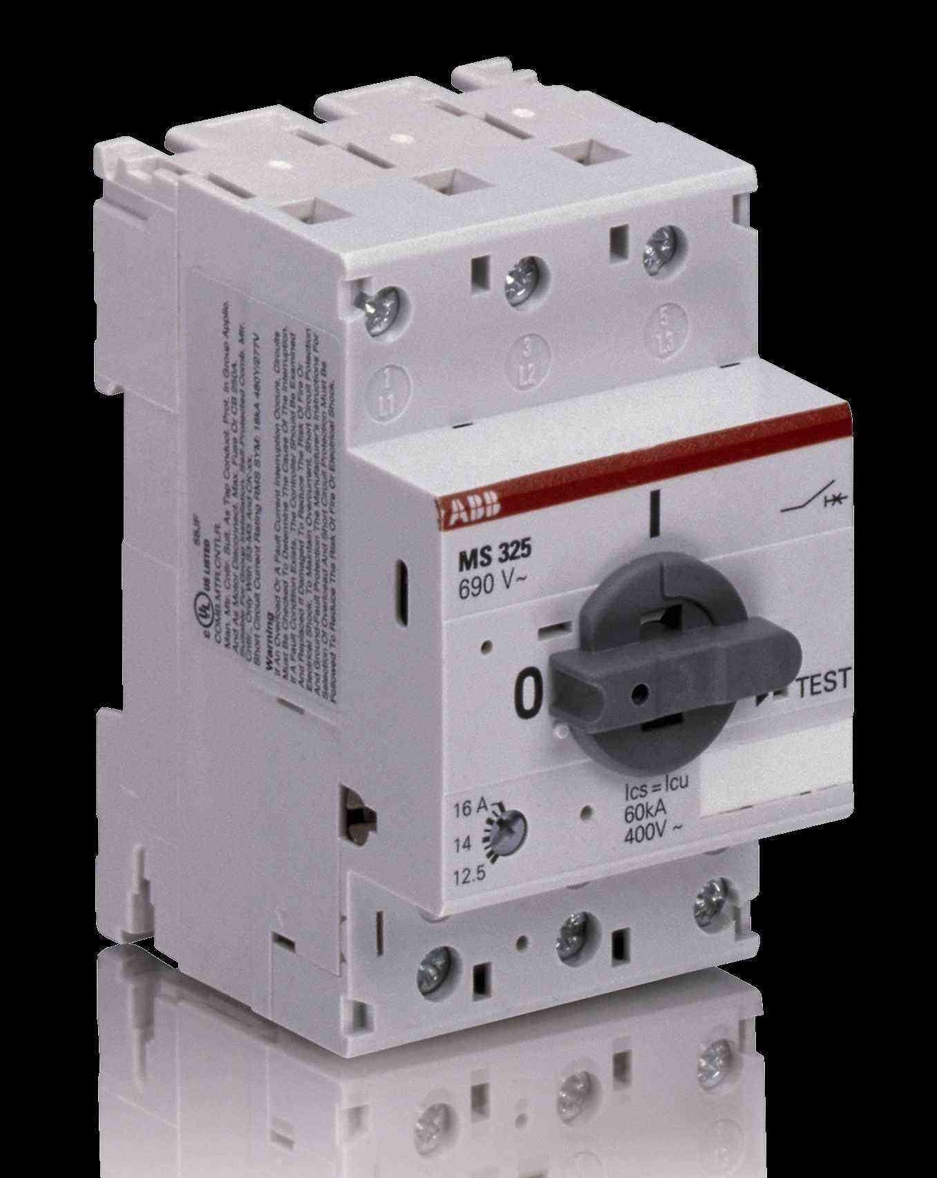 MS 325 - 20 s tepelnou a zkratovou ochranou s pomocným kontaktem 1NO + 1NC, čelní montáž, Rozsah nastavení 16…20A Výkon motoru 9kW, Napájecí napětí 690V AC/440VDC, Třída spouštění 10, Zkratová odolnost 55kA, Rozměr 54x87,5x70