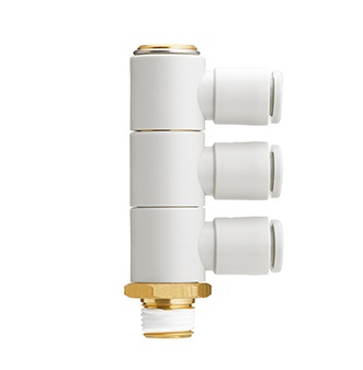 KQ2VT06-02A, úhlová spojka se třemi vývody a vnějším závitem, SMC - balení po 10 ks