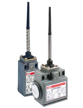 LS25M92D11-P01- Polohový spínač s kovovým tělem, Šířka těla 35mm, Vývod kabelu- vpravo/vlevo, Kovová pružinová tyč s izolovaným koncem, NO+NC, Kluzné kont. s prodlevou, IP 66