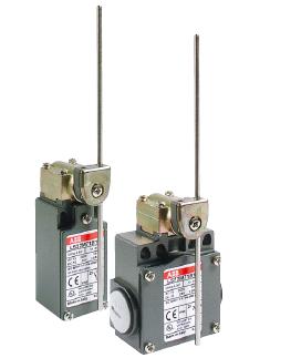 LS45P71L20 -Polohový spínač s plastovým tělem, Šířka těla 40mm, Průchodka 1/2 NPT ( plastický adaptér ), Podálně přestavitelná páka s ocelovou tyčí ø3mm, 2xNO, Kluzné kont., IP 65