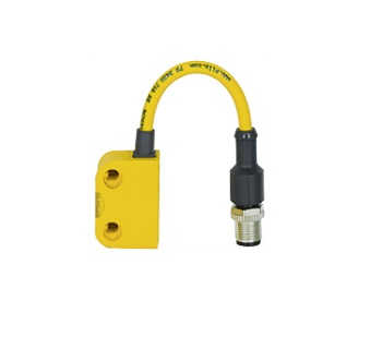 Magnetický bezpečnostní spínač 2 n/o, 1 pomocný kontakt n/o, 5pól.kolíkový konektor M12 , kvádrový tvar, LED, IP67, spínací vzdálenost závislá na ovladači, výška konstrukce 18 mm, balení = 1 senzor.