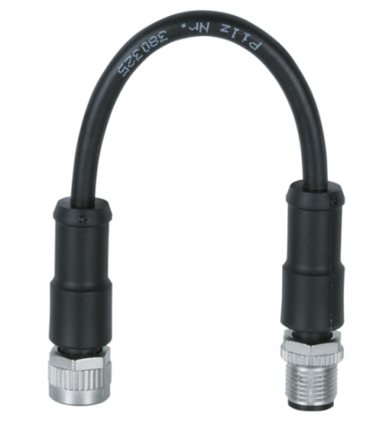 Kabel, adaptér, IP68, M12 zásuvka, černá, rovná, 8pól., kódování A na konektor M12, černý, rovný, 5pól., kódování A, PUR, 0,1 m, 5× 0,25 mm², černá barva, se stíněním (oplet), pro připojení senzoru PSENslock-(bezpečné monitorování ochranné brány) na PSS67 a PDP67.