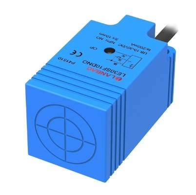 Indukční snímač hranatý 30x30x53mm, LE30SN15DNO, 15mm, NPN, NO, Kabel 2m, LANBAO