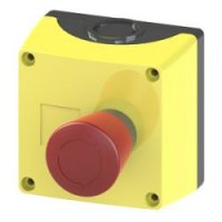 Skříňka s TOTAL STOP - IP65,2r,hor.díl žlutý-hř.tlač,s metr.záv, 3SB3801-0EG3, Siemens