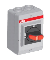 3-pólový odpínač v krytí IP65, plastový, šedý, černá rukojeť uzamykatelná třemi zámky s indikací 0-1 a OFF-ON, N-, PE- svorky, 2xmembránová průchodka, držák kabelů.