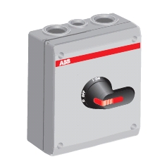 6-pólový odpínač v krytí IP65, plastový, šedý, žluto-červená rukojeť uzamykatelná třemi zámky s indikací 0-1 a OFF-ON, N-, PE- svorky