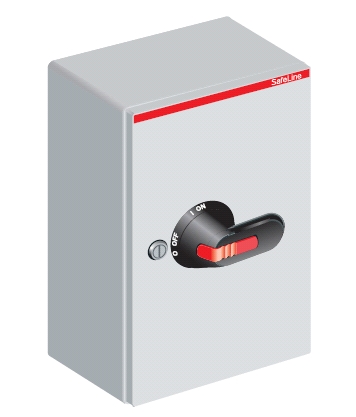 6-pólový odpínač v krytí IP65, nerezový plech, černá rukojeť uzamykatelná třemi zámky s indikací 0-1 a OFF-ON, N-, PE- svorky